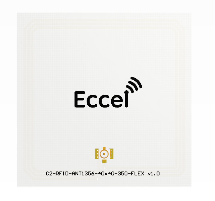 The Flex ANT1356 40×40 antenna is made from polyimide flexible material. On the bottom side an adhesive layer is included.